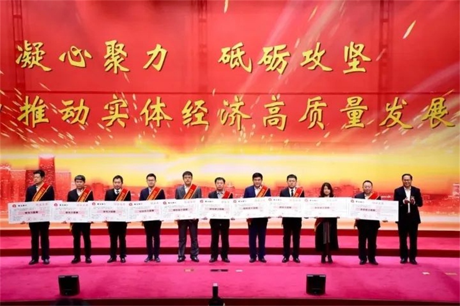 2020年4月10日上午,平度市促進(jìn)實(shí)體經(jīng)濟(jì)高質(zhì)量發(fā)展大會在市民服務(wù)中心報告廳隆重召開,我公司榮獲“品牌質(zhì)量建設(shè)獎”和“技術(shù)改造獎”兩項(xiàng)獎項(xiàng)。公司總經(jīng)理張海德代表公司出席大會,并接受獎牌。